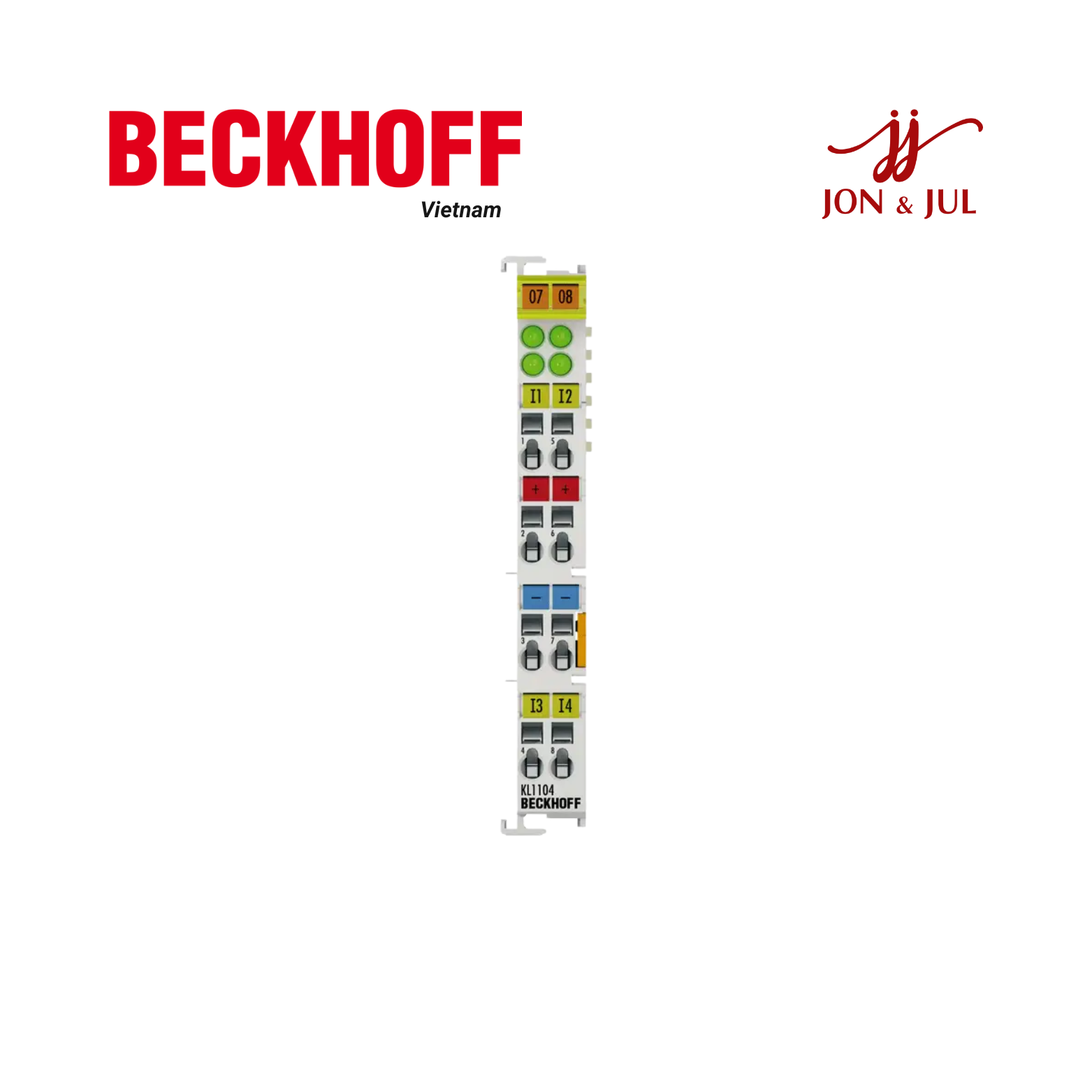 KL1104 là module đầu vào số (digital input) thuộc dòng Bus Terminal của Beckhoff. Beckhoff là thương hiệu uy tín trong lĩnh vực tự động hóa, nổi bật với các giải pháp I/O mô-đun, điều khiển EtherCAT, và hệ thống điều khiển mở cho công nghiệp.